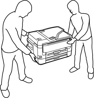 Alignement de la tête d'impression - Ce produit est lourd. Veillez à ce que son transport soit assuré par deux personnes positionnant leurs mains comme illustré :