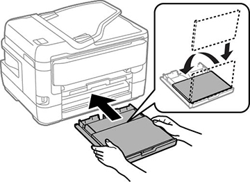 - Sortez le bac papier en tirant et retirez le couvercle du bac papier.
