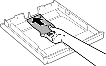 - Chargez une enveloppe côté court en premier, avec le rabat vers le bas et le côté du rabat vers la droite.