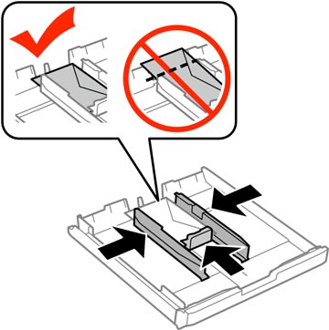 Pour éviter des problèmes d'alimentation, assurez-vous que vous ne chargez pas trop d'enveloppes dans le bac papier. - Faites glisser les guide-papier contre les enveloppes, sans trop serrer.