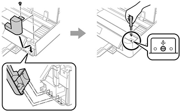 - Utilisez un tournevis à tête plate pour desserrer les vis sur le couvercle de la boîte de maintenance comme indiqué, puis retirez le couvercle.