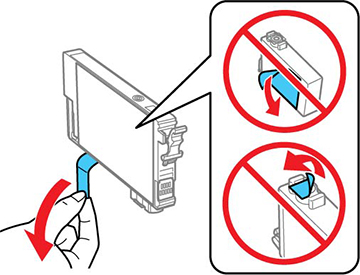 Ne déplacez pas la tête d'impression à la main ou n'utilisez pas d'outil pour retirer la cartouche, sinon, vous risquez d'endommager votre produit. Ne touchez pas au câble plat blanc à l'intérieur de l'imprimante. - Retirez toutes les cartouches d'encre. Pour chacune, pincez la languette bleue afin de déverrouiller la cartouche d'encre. Puis, soulevez la cartouche de façon bien droite afin de la retirer.Avertissement: Si vous recevez de l'encre sur votre peau, lavez-la soigneusement avec du savon et de l’eau. Si vous recevez de l’encre dans les yeux, rincez-les immédiatement avec de l’eau. Si l'inconfort ou des problèmes de vision persistent, consultez immédiatement un médecin. Si de l'encre pénètre dans votre bouche, crachez-la et consultez immédiatement un médecin. Gardez les cartouches d’encre hors de portée des enfants.