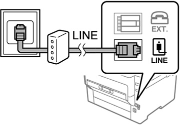 - Branchez un câble téléphonique à votre prise téléphonique murale et au port LINE de votre produit.
