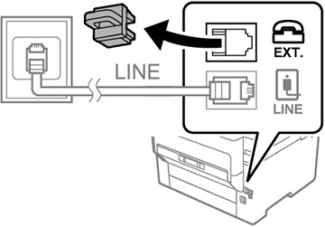 - Si vous connectez un téléphone ou un répondeur à votre produit à l'aide d'un second câble de téléphone, retirez le bouchon du port EXT de votre produit.