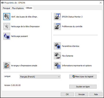 Modification de la langue d'affichage des écrans du logiciel d'impression