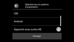 - Pour d'autres types d'appareils, sélectionnez Appareils avec autres SE. Utilisez votre appareil pour sélectionner le nom du réseau Wi-Fi (SSID) affiché à l'écran ACL et saisissez le mot de passe affiché. Suivez les instructions à l'écran ACL pour poursuivre.