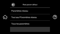 d'accueil, au besoin. - Sélectionnez Paramètres > Rest param défaut. Un écran comme celui-ci s'affiche :