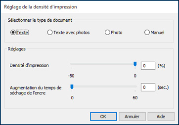 - Cliquez sur le bouton Densité d'impression. Cette fenêtre s'affiche :