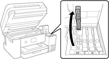 - Ouvrez le couvercle du réservoir d'encre que vous comptez remplir.
