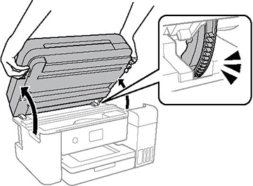 - Levez l’unité du scanner à deux mains jusqu’à ce qu’elle s’enclenche.