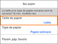 - Sélectionnez Param. pap. favoris pour choisir parmi une liste de paramètres papier utilisés fréquemment.