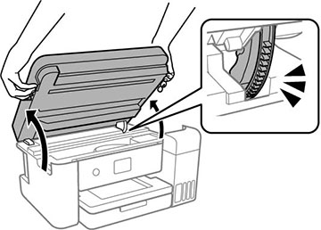 - Levez l’unité du scanner à deux mains jusqu’à ce qu’elle s’enclenche.