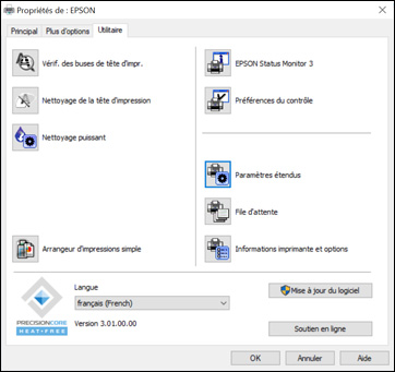 Modification de la langue d'affichage des écrans du logiciel d'impression