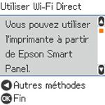 - Pour connecter sans utiliser l'application Epson Smart Panel, appuyez sur le bouton fléché de gauche et passez à l'étape suivante.