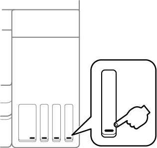 Pour confirmer les quantités réelles d'encre restante, vérifiez visuellement les niveaux d'encre dans les réservoirs. Assurez-vous que les niveaux d'encre se situent au-dessus de la ligne la plus basse des réservoirs.