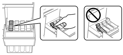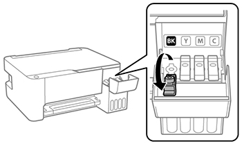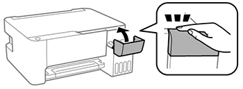 - Lorsque le réservoir est plein, retirez la bouteille d'encre et refermez bien le couvercle du réservoir comme illustré.