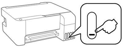 Pour confirmer les quantités réelles d'encre restante, vérifiez visuellement les niveaux d'encre dans les réservoirs. Assurez-vous que les niveaux d'encre se situent au-dessus de la ligne la plus basse des réservoirs.Si le niveau d'encre de l'un des réservoirs se situe sous la ligne la plus basse, remplissez le réservoir jusqu'à la ligne la plus haute.