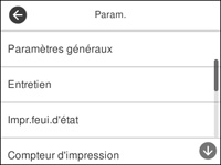 d'accueil, si nécessaire. - Sélectionnez Param. Un écran comme celui-ci s'affiche :