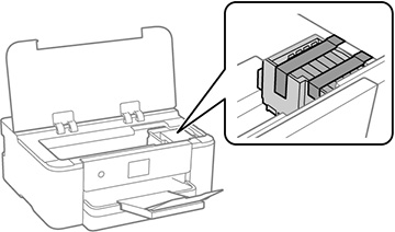 - Ouvrez le capot de l'imprimante et fixez bien le logement des cartouches d'encre à l'imprimante comme illustré.