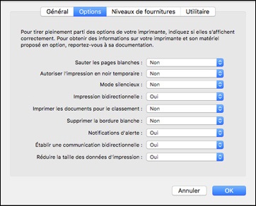 Remarque : L'apparence des fenêtres d'options et les paramètres disponibles pourraient être différents de ceux de ce document, selon la version de Mac OS et l'application que vous utilisez.