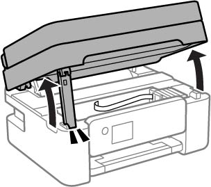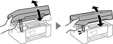 - Lorsque vous avez terminé de remplacer les cartouches, soulevez légèrement l'unité du scanner et rabaissez-la. Lorsque l’unité du scanner s’arrête, levez-la de nouveau et abaissez-la complètement.
