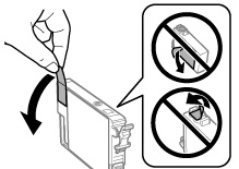 Ne secouez pas les cartouches d’encre après les avoir déballées, sinon l’encre risque de fuir. - Retirez la cartouche de son emballage.