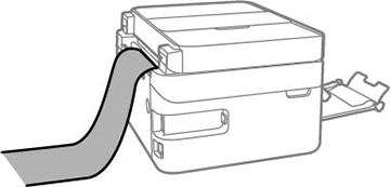 - Pour charger une feuille de papier plus longue que le format légal, fermez le support à papier et aplatissez le bord d'attaque du papier comme indiqué. Sélectionnez Personnalisé(e) comme paramètre de taille de papier.