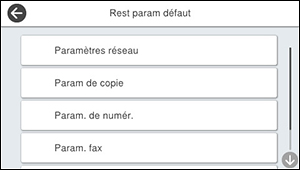 - Param. fax : Réinitialise tous les paramètres de télécopie.