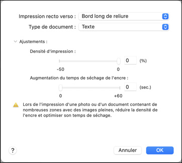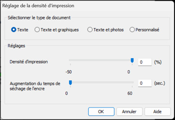 - Cliquez sur le bouton Densité d'impression. Cette fenêtre s'affiche :