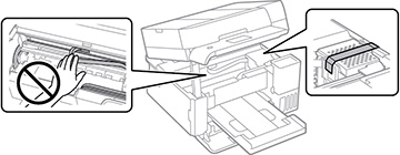 Attendez que le témoin d'alimentation s'éteigne avant de débrancher le câble d'alimentation pour permettre à la tête d'impression de revenir à sa position initiale. Si la tête d'impression ne revient pas à sa position initiale, l'encre peut sécher et votre produit peut être endommagé. - Débranchez tous les câbles connectés.