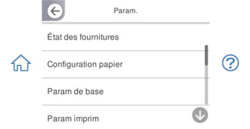 d'accueil, au besoin. - Sélectionnez Paramètres. Un écran comme celui-ci s'affiche :