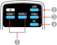 1 Sources du port HDMI 2 Source réseau 3 Sources vidéo 4 Sources du port PC (VGA)