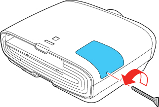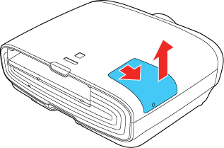 - Faites glisser le couvercle de la lampe vers le côté du projecteur, puis retirez-le.