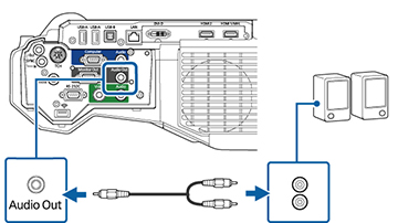 Remarque : Les haut-parleurs internes du projecteur sont désactivés si vous branchez des haut-parleurs externes.