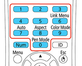 - Maintenez la touche Num de la télécommande enfoncée et utilisez les touches numériques pour entrer un mot de passe de quatre chiffres.