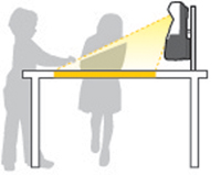 Placé sur une table ou un chariot portatif pour projeter l'image derrière un écran translucide (fonctionnalités interactives non prises en charge)