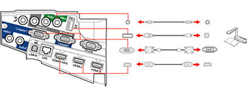- Pour la caméra de documents d'Epson DC-21, branchez-la au port HDMI, Computer ou Video du projecteur et au port correspondant de la caméra de documents. Consultez le manuel de la caméra pour obtenir plus de détails.