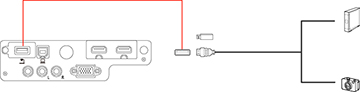 Vous pouvez brancher votre appareil USB ou votre appareil photo au port USB-A et l'utiliser pour projeter des images ou d'autres contenus.- Si votre appareil USB est doté d'un adaptateur d'alimentation, branchez l'appareil dans une prise de courant.