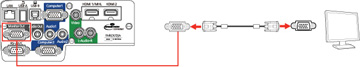 - Branchez le câble du moniteur externe au port Monitor Out du projecteur.