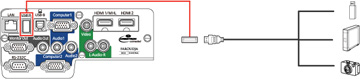 - Branchez le câble USB (ou la clé USB ou le lecteur de carte) au port USB-A du projecteur.