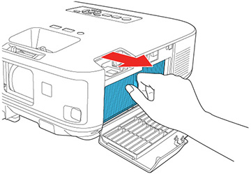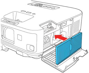 - Placez un nouveau filtre dans le projecteur comme le montre l'illustration et poussez-le délicatement jusqu'à ce qu'il s'enclenche.