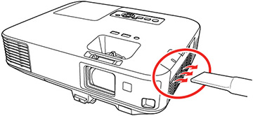 Nettoyez le filtre à air et les évents du projecteur s'ils sont poussiéreux ou si vous voyez un message vous avisant de les nettoyer.- Mettez le projecteur hors tension et débranchez son cordon d'alimentation.