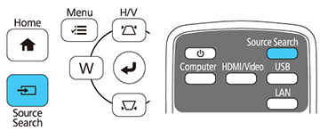 - Appuyez sur la touche Source Search du projecteur ou de la télécommande jusqu'à ce que l'image de la source voulue apparaisse à l'écran.
