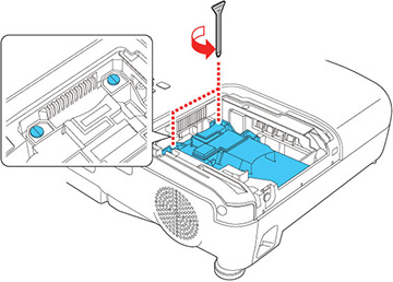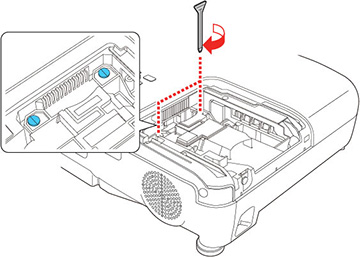 3. Utilisez le tournevis fourni avec la lampe de remplacement pour desserrer la vis de fixation du couvercle de la lampe.