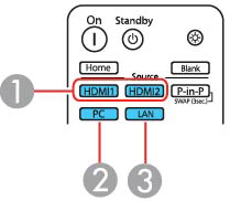 1 Sources du port HDMI 2 Source du port Computer (VGA) 3 Source réseau - Appuyez sur la touche Home de la télécommande et sélectionnez votre source d'image.