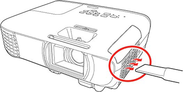 Nettoyez le filtre à air et les orifices de ventilation du projecteur s'ils sont poussiéreux ou si vous voyez un message vous avisant de les nettoyer.- Mettez le projecteur hors tension et débranchez son cordon d'alimentation.
