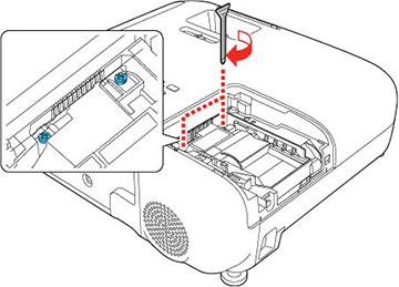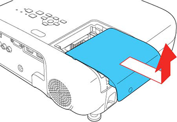 - Faites glisser le couvercle de la lampe vers le côté du projecteur, puis retirez-le.