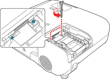 - Utilisez le tournevis fourni avec la lampe de remplacement pour desserrer la vis de fixation du couvercle de la lampe.
