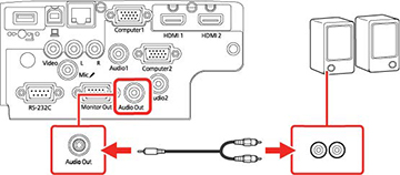 Remarque : Les haut-parleurs internes du projecteur sont désactivés si vous branchez des haut-parleurs externes.