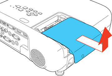 4. Faites glisser le couvercle de la lampe vers le côté du projecteur, puis retirez-le.